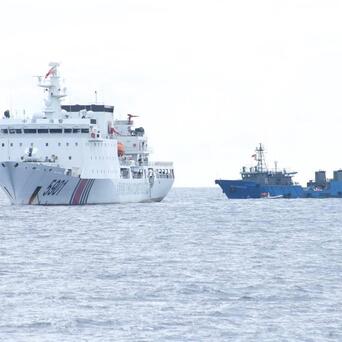赖在仙宾礁不走的菲海警,吃着蛋糕对镜头比耶,挑衅意味十足